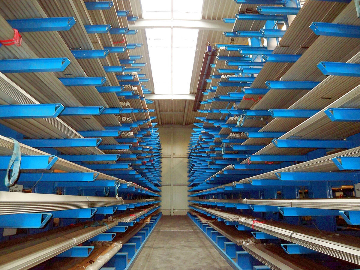 Rješenje je bio sustav konzolnih regala visine 7,50 m i s 14 razina skladištenja jedna iznad druge, pri nosivosti od po 1.200 kg po konzoli dužine 1.250 mm.