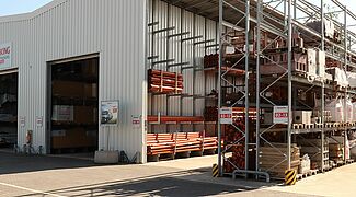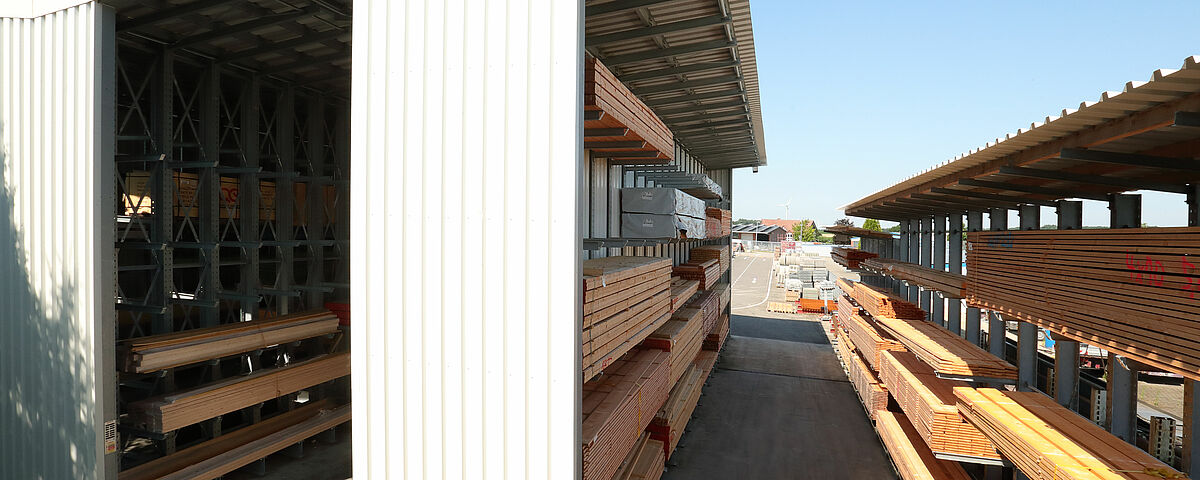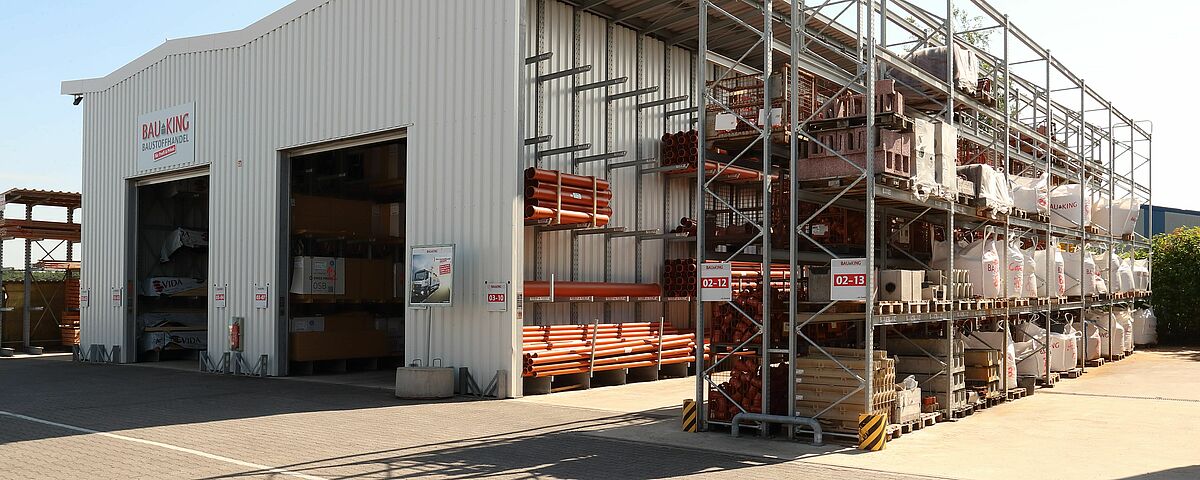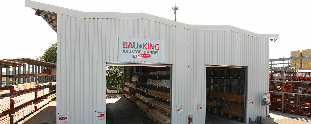 U okviru spajanja dviju lokacija, tvrtka BAUKING je reorganizirala i skladište svojih proizvoda od drva na lokaciji Lorup. U novoj regalnoj hali OHRA, sastavljenoj od konzolnih regala, kupci maloprodajnih dućana s građevinskim materijalom sada mogu pronaći sve drvene proizvode na jednom mjestu. K tome ovaj sustav regala nudi i znatno veći kapacitet skladištenja, tako da BAUKING može skladištiti i veći broj različitih artikala. Kako bi se vanjska skladišna površina sigurno odvodnjavala, podna ploča na kojoj se nalazi hala ima nagib od 0,7 posto u dva smjera. OHRA je kompenzirala nagib ovjesom konzolnih krakova u uskim rupama i s pomoću specijalne, fleksibilne krovne konstrukcije.