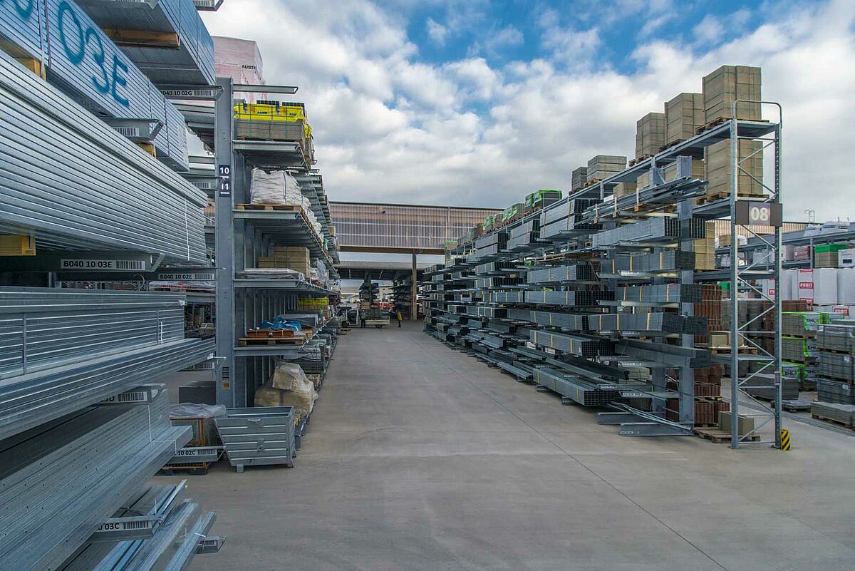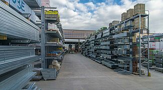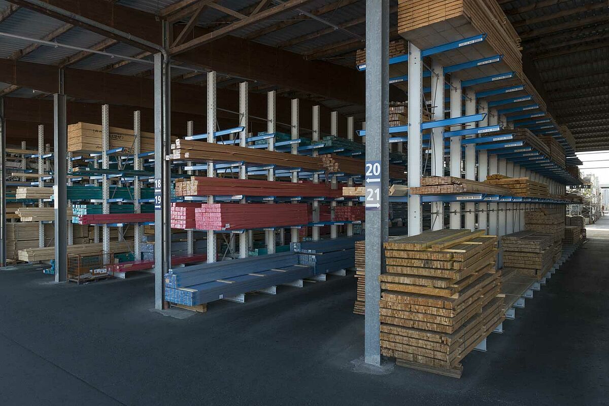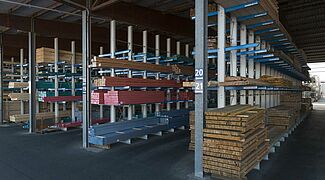 Postojeće skladište također je optimizirano: Ono ne služi samo za opskrbu kupaca, nego se odatle drvom i građevinskim materijalom opskrbljuju i četiri druge podružnice. U okviru restrukturiranja tvrtka Beinbrech odlučila je zamijeniti postojeće regalne sustave novim konzolnim regalima. Uz visinu postolja do 6,58 metara, oni su znatno viši od starih regala i time nude više prostora. Na taj se način svako djelomično skladištenje može brzo komisionirati, a mogu se pohraniti i velike količine.