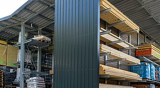 Tvrtka Gaigher + Penn, specijalizirani trgovac građevinskim materijalom s područja krovova i fasada na sjeveru Minhena, zamijenila je regale, od kojih su neki samozavareni, profesionalnim sustavom regala iz tvrtke OHRA. Konzolni regali zbog svoje nosivosti ne samo da nude povećani skladišni kapacitet, već i znatno veću sigurnost za zaposlenike. K tome, integrirana krovna konstrukcija štiti robu od nepovoljnih vremenskih prilika. S novim sustavom regala, tvrtka je također u postojećoj skladišnoj hali mogla stvoriti prostor za sveobuhvatnu ponudu limova – i na taj način naglasiti svoju tvrdnju da je dobavljač cjelovitog asortimana na području krovova i fasada.