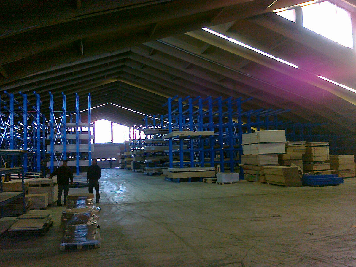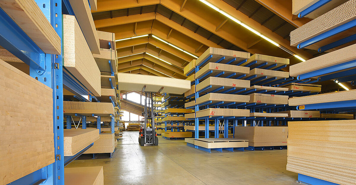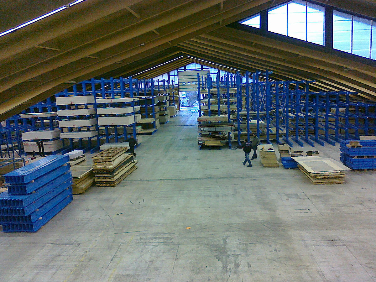 Pri tome je OHRA morala jednu posebnost uzeti u obzir: novo skladište integrirano je u postojeću, bivšu halu trgovine za građevinski materijal s relativno nisko spuštenim kosim krovom. Zahvaljujući modularnoj strukturi OHRA konzolnih regala mogla se odlično iskoristiti raspoloživa visina skladišta: visina regala počinje na vanjskom zidu hale s tri metra i postepeno se povećava do visine regala od šest metara u središtu hale. Na području maksimalne visine postavljeno je sedam razina regala. Materijal u oko 800 raspoloživih mjesta za skladištenje utovaruju i istovaruju električni viljuškari.