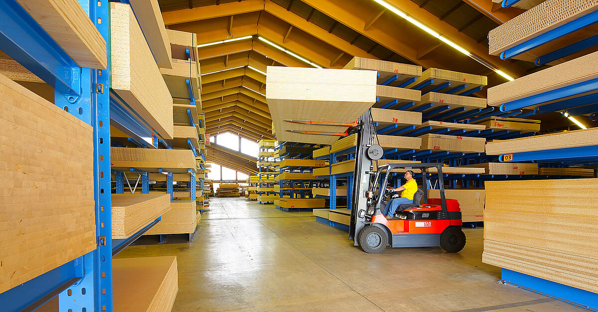U novom distribucijskom centru tvrtka Gitsche skladišti furnire, proizvode od drvnih strugotina i drvene materijale te materijale u pločama dimenzija od 250 x 125 cm do 560 x 210 cm. Tvrtka je već ranije u svojem sjedištu zamijenila postojeće regalne sustave konzolnim regalima tvrtke OHRA. Uvjerena u visoku kvalitetu regala od normiranog toplo valjanog građevinskog čelika, ova tvrtka, koja se bavi trgovinom drvom, opremila je i svoj novi distribucijski centar regalima tvrtke OHRA.