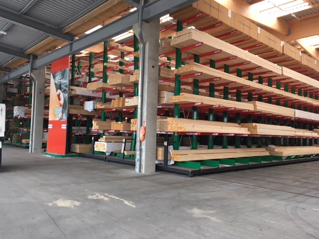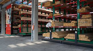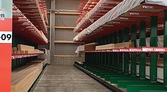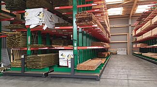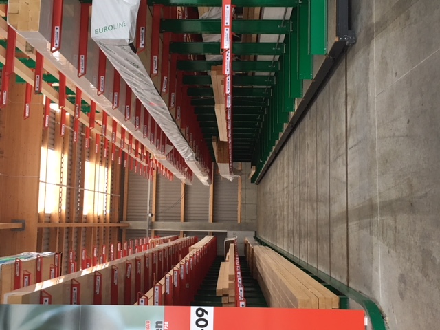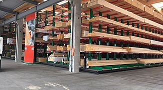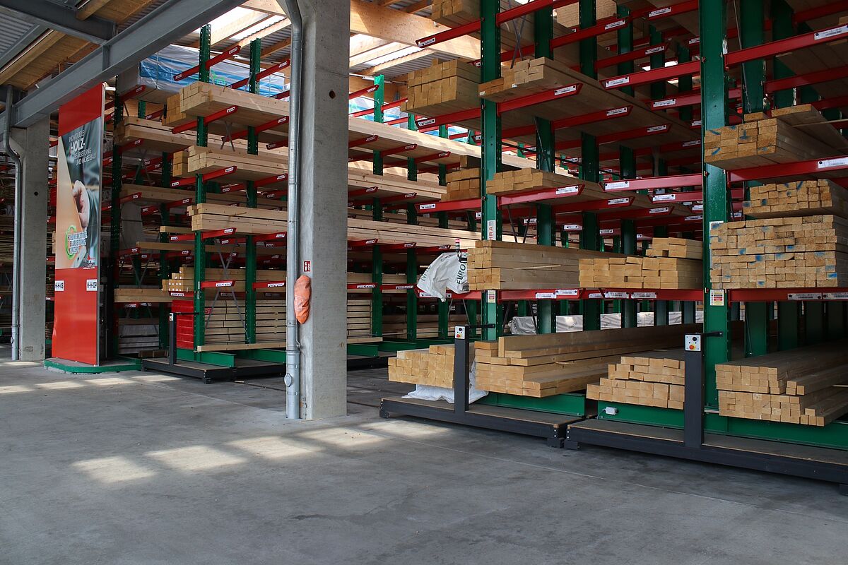 U skladištu se građevinski materijal komisionira prema narudžbama obrtnika i privatnih graditelja. Tamo se pohranjuju razni građevinski materijali, drvena građa duljine do 13 metara i razna roba u vrećama. Kako bi klijentima mogli ponuditi najširu moguću paletu robe, glavni fokus modernizacije bio je povećanje kapaciteta pohrane – do sada su proizvodi pohranjivani isključivo u višećelijskim konzolnim regalima.