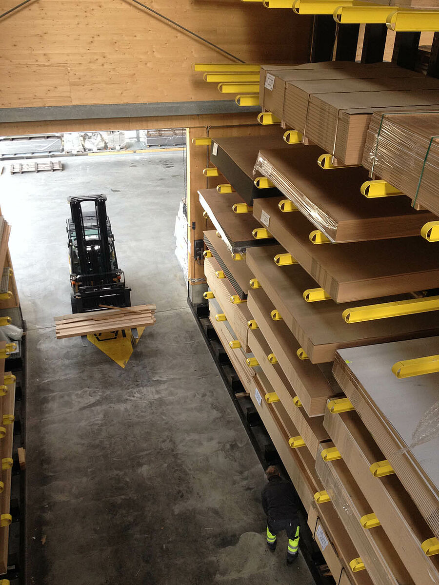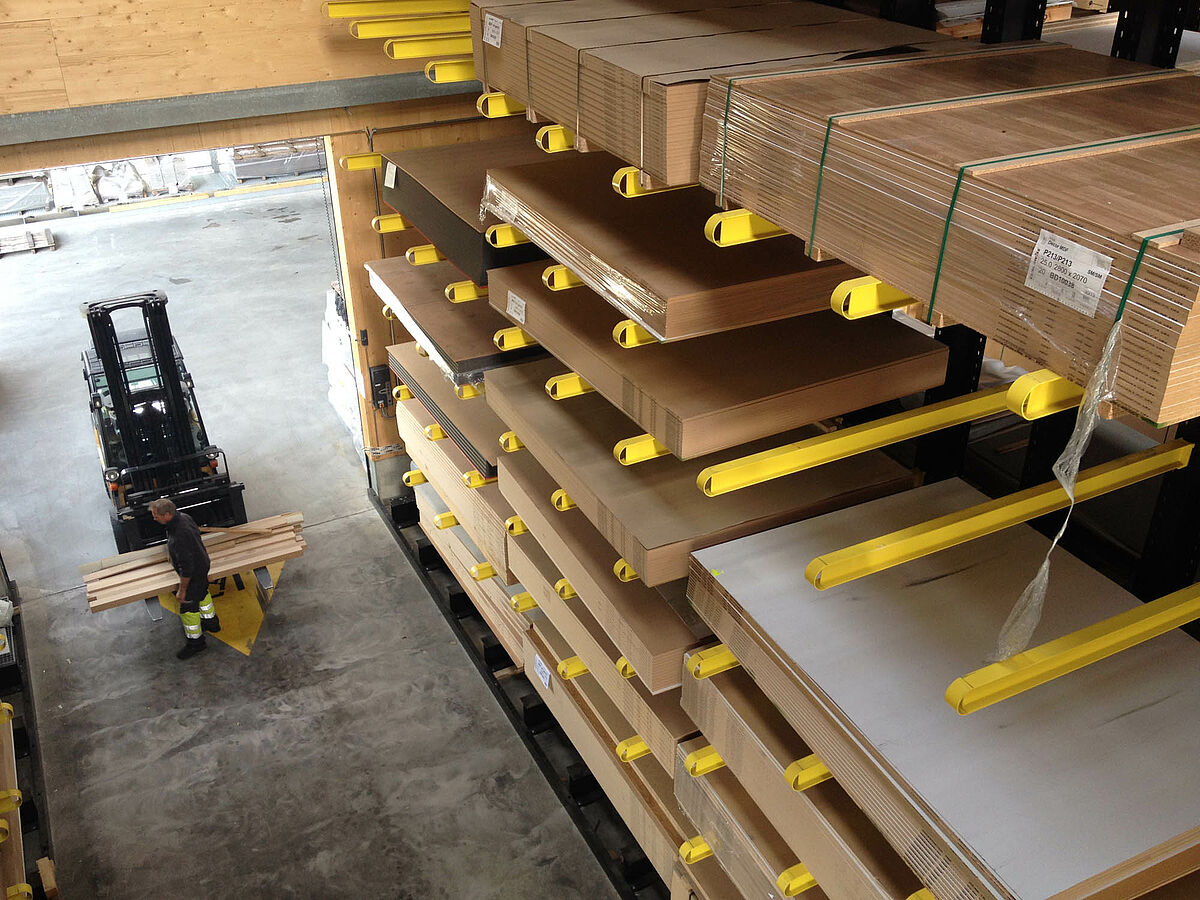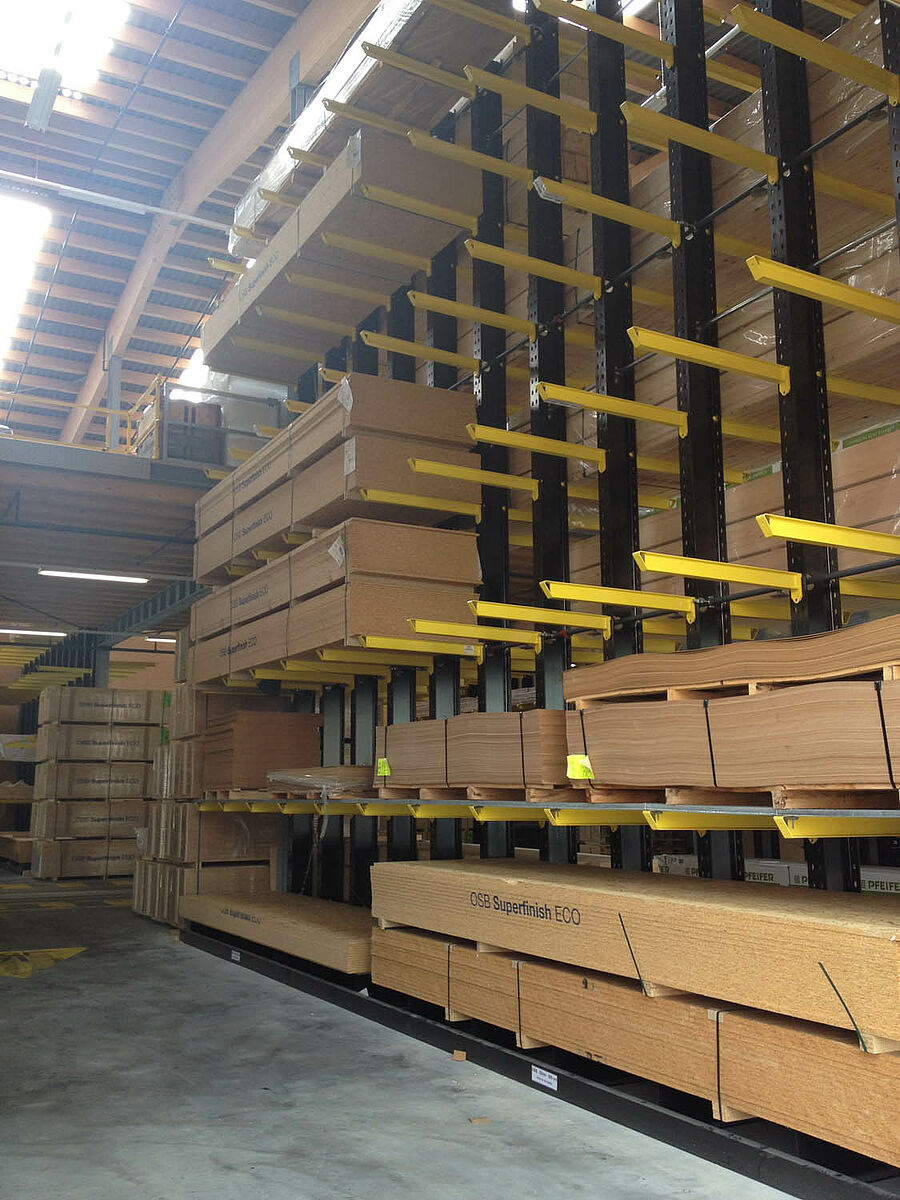 Skladište u Bielu podijeljeno je u dvije drive-through zone na površini oko 3000 kvadratnih metara. U hali je OHRA montirala oko 600 metara duge konzolne regale visine 9 metara, na 7 razina i pretežno 2,5 metara dubokim konzolama, kojima barataju četveroputni viličari. Vertikalni regali na kraju redova regala k tome omogućavaju pregledno skladištenje letvica, profila i cijevi. Paletni i konzolni regali u vruće pocinčanoj izvedbi u vanjskom području nude mjesto za dodatnih 600 paleta. Za skladištenje izolacijskog materijala integrirana je velika bina veličine 1000 kvadratnih metara u konstrukciju hale.