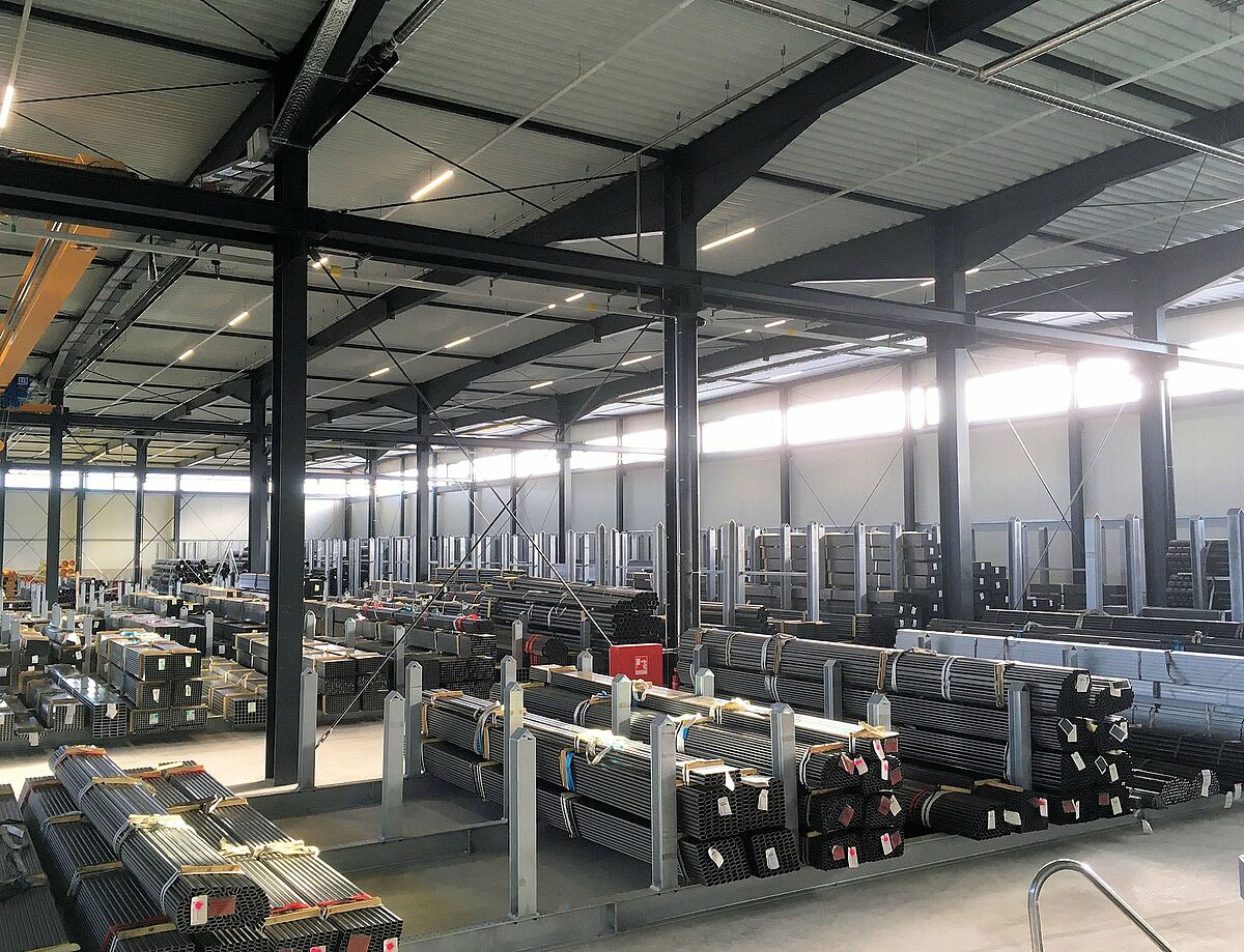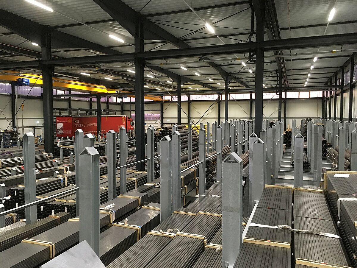 S novim centralnim skladištem cijevi u Chemnitzu, HTI Dinger & Hortmann, veletrgovac za niskogradnju i industrijsku tehnologiju, značajno je povećao učinkovitost svojih logističkih procesa. Veliki broj cijevi odnosno snopova cijevi različitih duljina i masa pohranjuje se u 30 regala za okomitu pohranu iz tvrtke OHRA. Ravno skladištenje omogućuje ciljano popunjavanje i vađenje pojedinih vrsta cijevi s pomoću četiriju premosnih dizalica. Cijevi se također mogu transportirati izravno s kamiona na regale za okomitu pohranu - bez potrebe da ih zakrećete, spuštate ili poravnavate na bilo koji drugi način. Selektivan pristup cijevima i jednostavno rukovanje omogućuju posebno učinkovitu logistiku cijevi. Osim toga, konzolni regali, također iz tvrtke OHRA, na unutarnjim i vanjskim stijenama hale omogućuju mjesto kojim se štedi prostor za lakše cijevi izrađene od plastike ili čelika tankih stijenki.