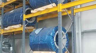 Namotaji izrađeni od širokog spektra (obojenih) limova su polazni materijali od kojih Invesztál proizvodi najrazličitije oblike i vrste krovnih sustava i sustava oluka. Prethodno ih je tvrtka skladištila na podu ili u paletnom regalu koji nije bio idealan za skladištenje namotaja. S novim, po mjeri izrađenim paletnim regalima za teške terete od tvrtke OHRA, tvrtka Invesztál je uspjela smanjiti štetu na namotajima i učinkovito iskoristiti prostor u novom skladištu.