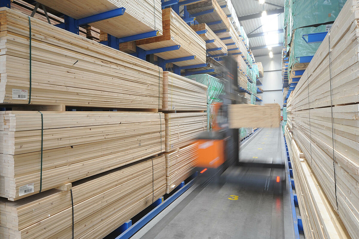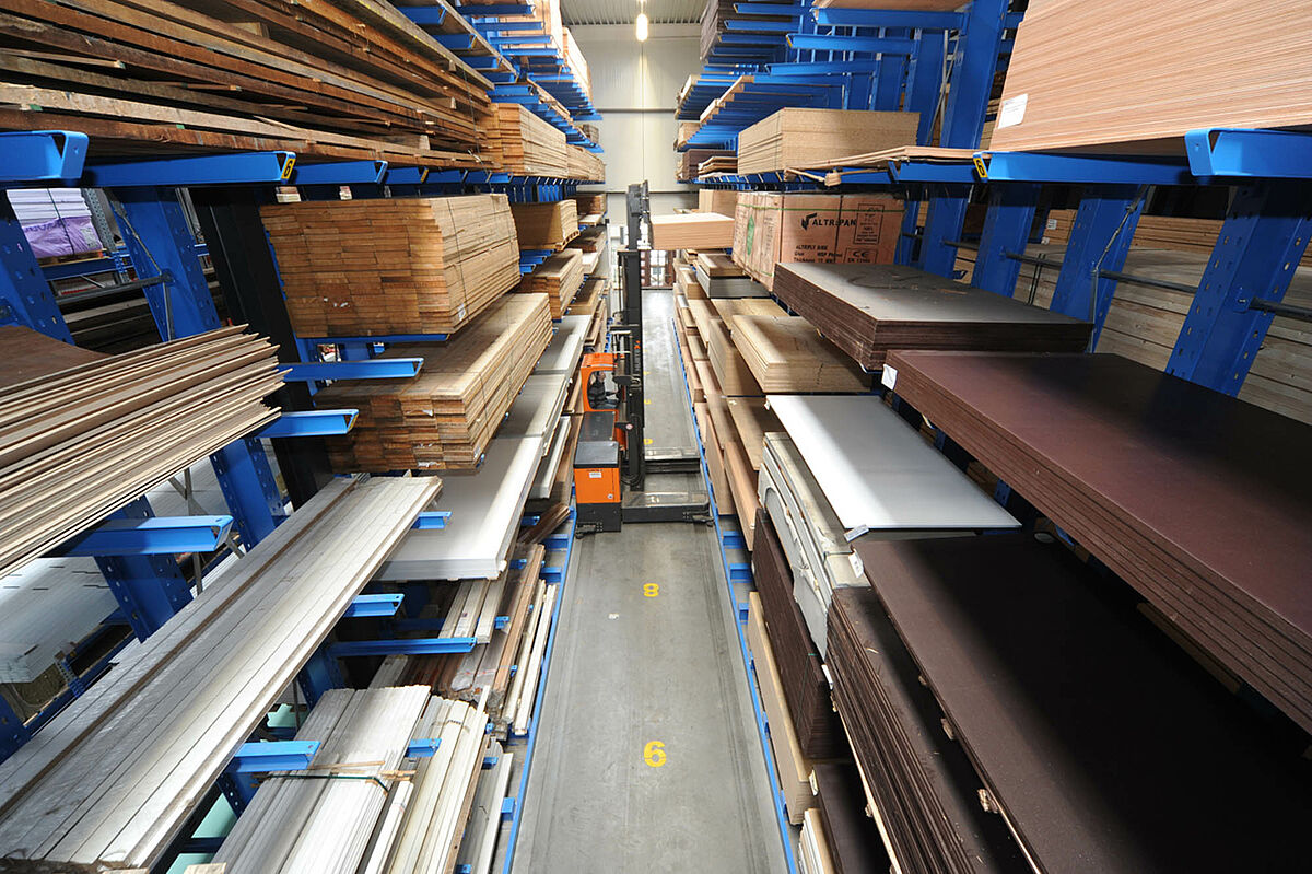 Kako bi se optimalno uskladištilo drvo, ploče i građevinske materijale OHRA je u samo dva mjeseca podigla jedanaest redova dugih 36 metara konzolnih regala te dva reda regala za palete. S visinom regala od 9 metara sva raspoloživa površina se koristi na najbolji mogući način, a reduciraju se i dionice koje mora prijeći viličar. Regali za palete sa širinom police od 2.700 milimetara na šest razina nude ukupno 462 skladišna mjesta. Konzolni regali na devet razina omogućavaju skladištenje ploča i dugih drveta, a širina konzole se kreće između 1.100 i 1.550 milimetara. Budući da ITS trguje i s teškim tvrdim drvima, neki su dijelovi regala koncipirani i kao regali za velike terete.