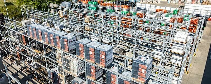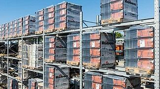 Paletni regali, od kojih je većina dizajnirana u dvostrukim redovima, nude ukupno oko 3.400 skladišnih mjesta. Duljina skladišnih razina konzolnih regala iznosi preko 1.250 metara, raspoređenih u šest skladišnih razina. Svi vanjski regali su vruće pocinčani, a neki od konzolnih regala su opremljeni i krovovima. Vertikalni regali su također prilagođeni visinom i iskoristivom dubinom, kako bi odgovarali portfelju letvica tvrtke Benthack. Vertikalni regali omogućuju trgovcu građevinskog materijala da na način prilagođen kupcima predstavi različite dimenzije i dizajne svojih letvica.