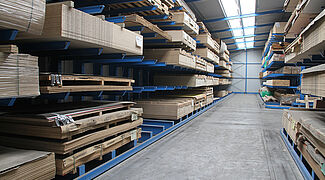 Francusko trgovačko poduzeće Gedimat Laboissiere znatno je proširilo svoje skladišne kapacitete za drvene ploče novom regalnom halom. Konzolni regali OHRA ne služe pri tome samo kao potpora konstrukciji hale nego umanjuju pričvršćenim konzolama i štete na uskladištenim drvenim pločama.