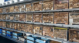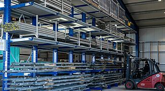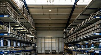 Nehomogena roba u skladištu predstavljala je izazov: Predmeti različitih težina, duljina i visina kao i različita pomagala koja se trebaju uskladištiti (kutije, palete, nosači s četiri kutne noge) moraju naći mjesta na novim regalima. „U praksi nam je bilo važno uskladištiti svu postojeću robu u samo jednom skladišnom sustavu”, kaže Fabian Bechtold, direktor tvrtke LEUBE. Kako bi to bilo moguće, sve razine skladišta konzolnim regala opremljene su rešetkastim podovima. To znači da se predmeti mogu fleksibilno i nesmetano skladištiti komad po komad.