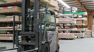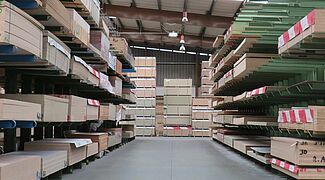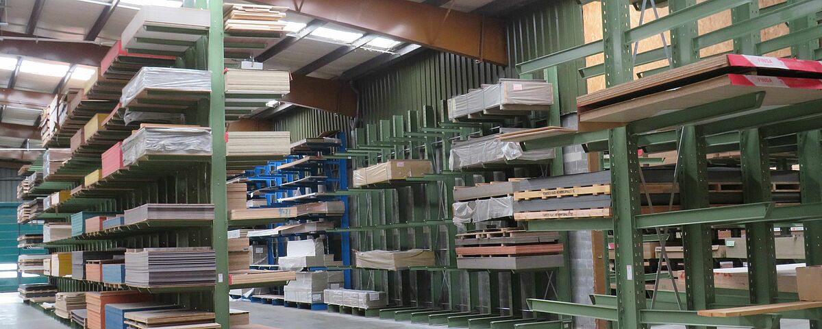 Tvrtka OHRA je stoga u skladišnom prostoru postavila različite sustave regala: Tu spadaju konzolni regali čiji krakovi duljine 1.300 milimetara imaju nosivost do 750 kilograma; najviša razina skladišta iznosi 5 metara. Iznad svega, ovdje se skladište ploče koje imaju veliki promet i moraju se stoga brzo izvaditi iz skladišta. Budući da se u prostor za HPL ploče morao smjestiti veliki broj raznih artikala koji se skladište na posebnim paletama dimenzija 3.050 × 1.300 milimetara, ovdje se koristi paletni regal: S dužinom od oko deset metara i visinom od oko 6 metara, ima 15 razina za skladištenje. Time se stvara velik broj odjeljaka za skladištenje, što omogućuje skladištenje za pojedine artikle po odjeljcima regala i time brz pristup robi.
