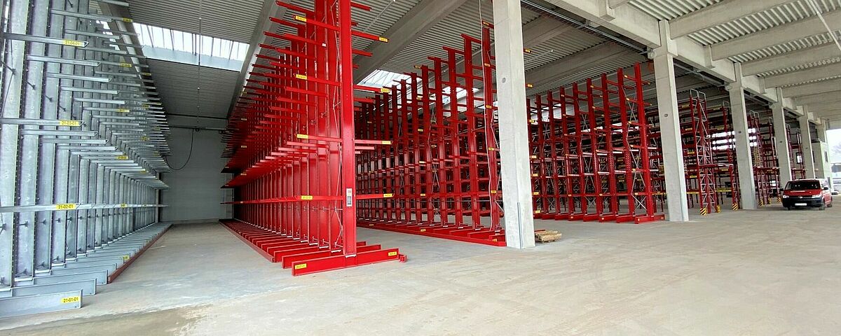 Veći skladišni kapaciteti, urednije skladištenje građevnog materijala i drva, kraći transportni putovi – odluka trgovca građevinskim materijalom Mayrose da na novoj lokaciji u Lingenu više ne skladišti u blok skladištu, već na regalima tvrtke OHRA, dovela je do jasno strukturiranog i znatno učinkovitijeg skladišta. Natkriveni objekt nudi oko 1.800 skladišnih mjesta u šest paletnih i tri reda konzolnih regala. Maksimalna skladišna visina od 7,4 metra, što je prilično neuobičajeno za trgovinu građevnim materijalom, omogućuje visoku iskoristivost raspoloživog prostora.