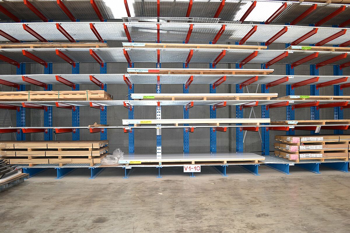 U modernoj proizvodnoj hali tvrtke Ronge Profil danas je ukupno sedam jednostranih konzolnih regala dugih između 3,6 i 76,5 metara. Na ukupno deset razina skladištenja - najvišoj na visini 6800 milimetara - omogućen je dovoljan kapacitet skladištenja kako bi se proizvodnja fleksibilno opskrbljivala potrebnim limovima. Dvostruko zauzimanje prostora više nije potrebno - tako se smanjuju napor i troškovi za skladištenje i preuzimanje.