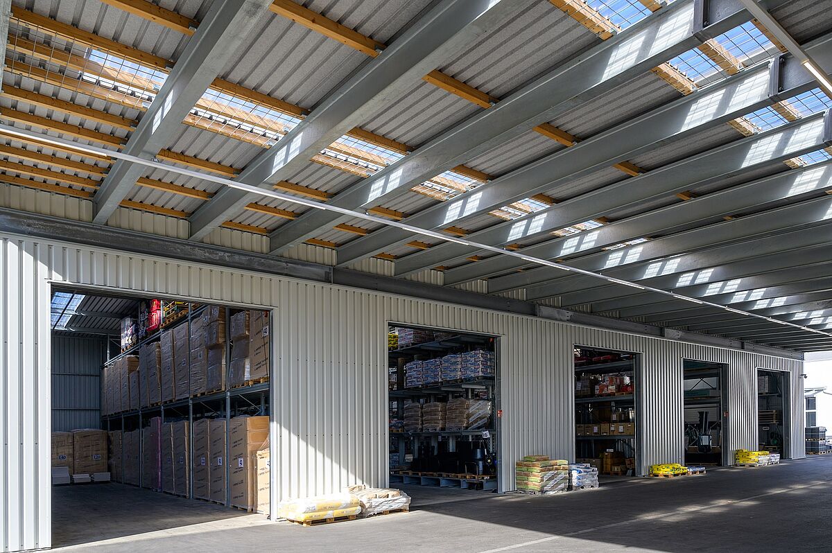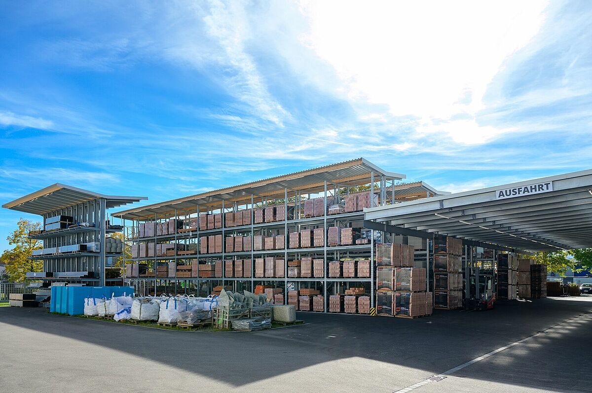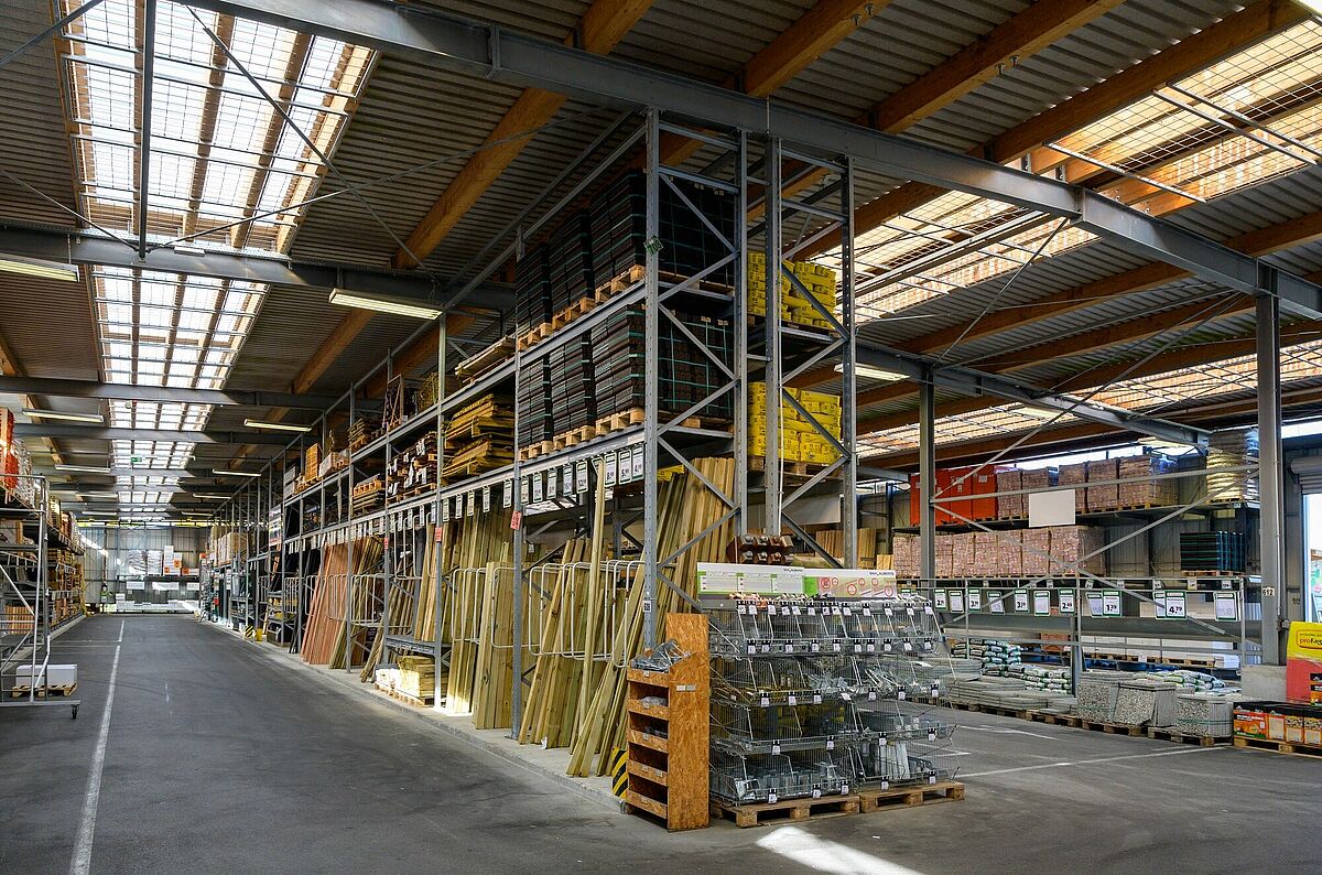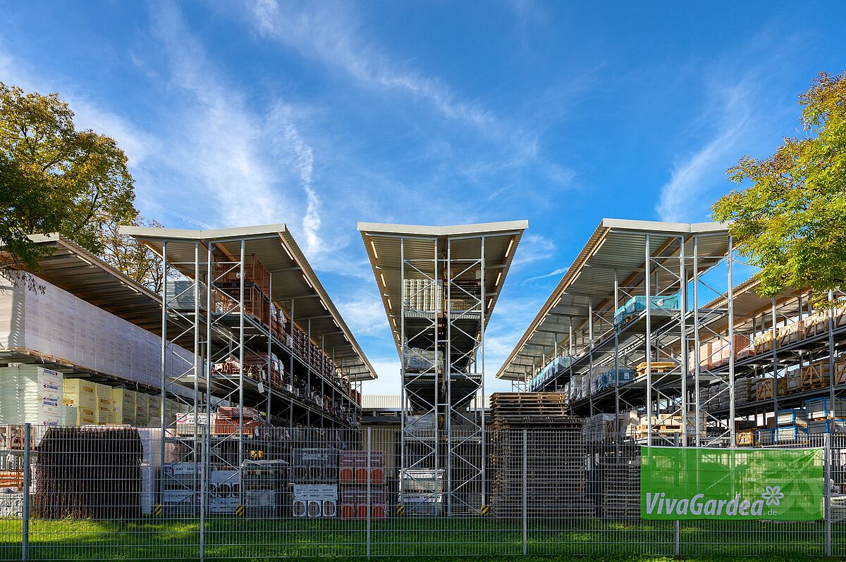 Jednostavno dođite vozilom izravno do željene robe i utovarite je. Drive-in princip olakšava kupovinu u trgovini građevinskih potrepština, posebno za glomazne i teške predmete poput (vrtnog) građevinskog materijala ili obloga za vrt. Schneider također koristi ovaj pristup u specijaliziranim trgovinama. Bez obzira na vremenske uvjete, kupci dobivaju potrebnu robu prikladno smještenu ispod natkrivene površine utovara s tri trake. Tvrtka OHRA je izvela halu u vidu regalne hale: Nosači regala služe ujedno kao nosiva potkonstrukcija za izgradnju hale. To skraćuje vrijeme projekta i nudi znatne troškovne koristi. Regalna hala je dopunjena konzolnim i paletnim regalima u vanjskom području, gdje je roba, zahvaljajući integriranom krovu, zaštićena od vremenskih uvjeta. Oba područja su povezana krovom od 13 metara. Osim toga, OHRA je realizirala halu za toplo skladištenje bez mraza u kojoj se, osim uredskog prostora, mogu sigurno skladištiti i građevinske kemikalije i podne obloge.
