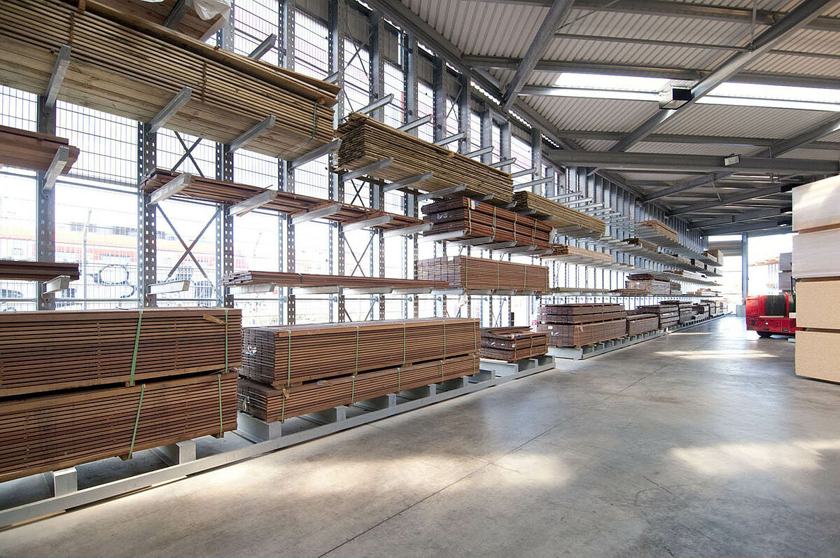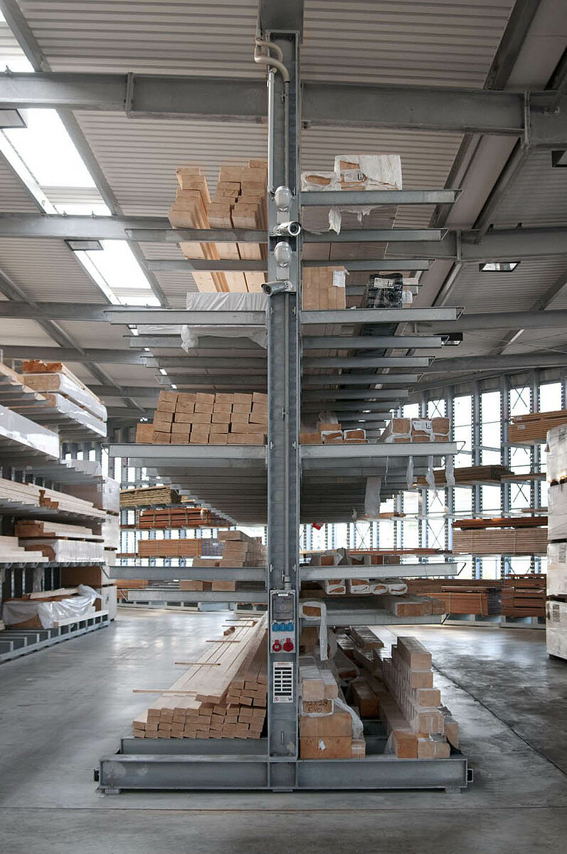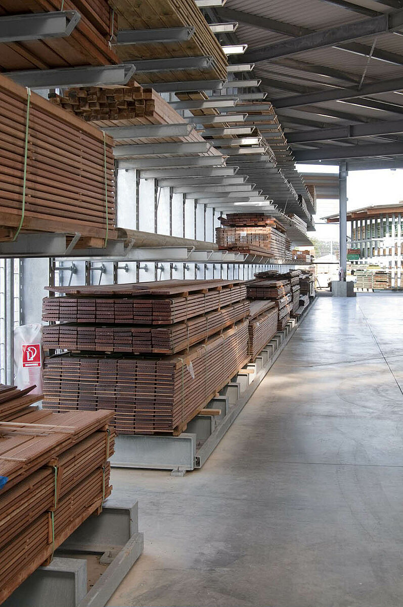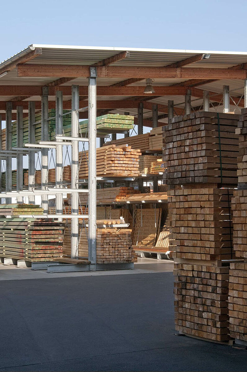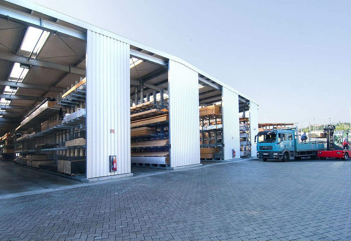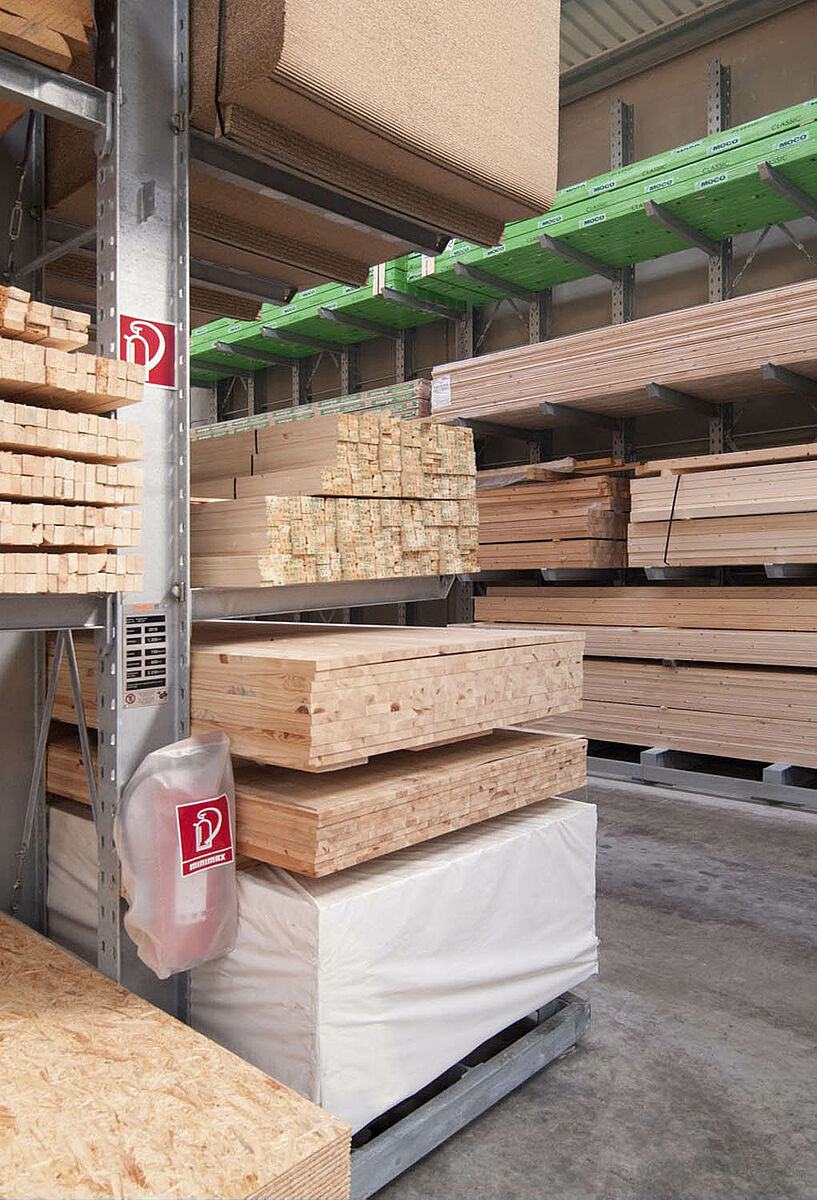 Tvrtka Schyns GmbH sa sjedištem u Siegburgu kao veleprodaja i maloprodaja nudi sveobuhvatni drveni asortiman za privatne i poslovne stranke – od konstrukcija od punog drveta do vrtnih kuća. Drveni proizvodi skladište se u skladištu s regalima, koje se već preko 20 godina kontinuirano povećava. Iz pojedinih redova regala razvila se iz godine u godinu kompletna hala, čija se veličina kasnije opet udvostručila. Cijelo skladište tako je raslo ukorak s proširenjem poduzeća.
