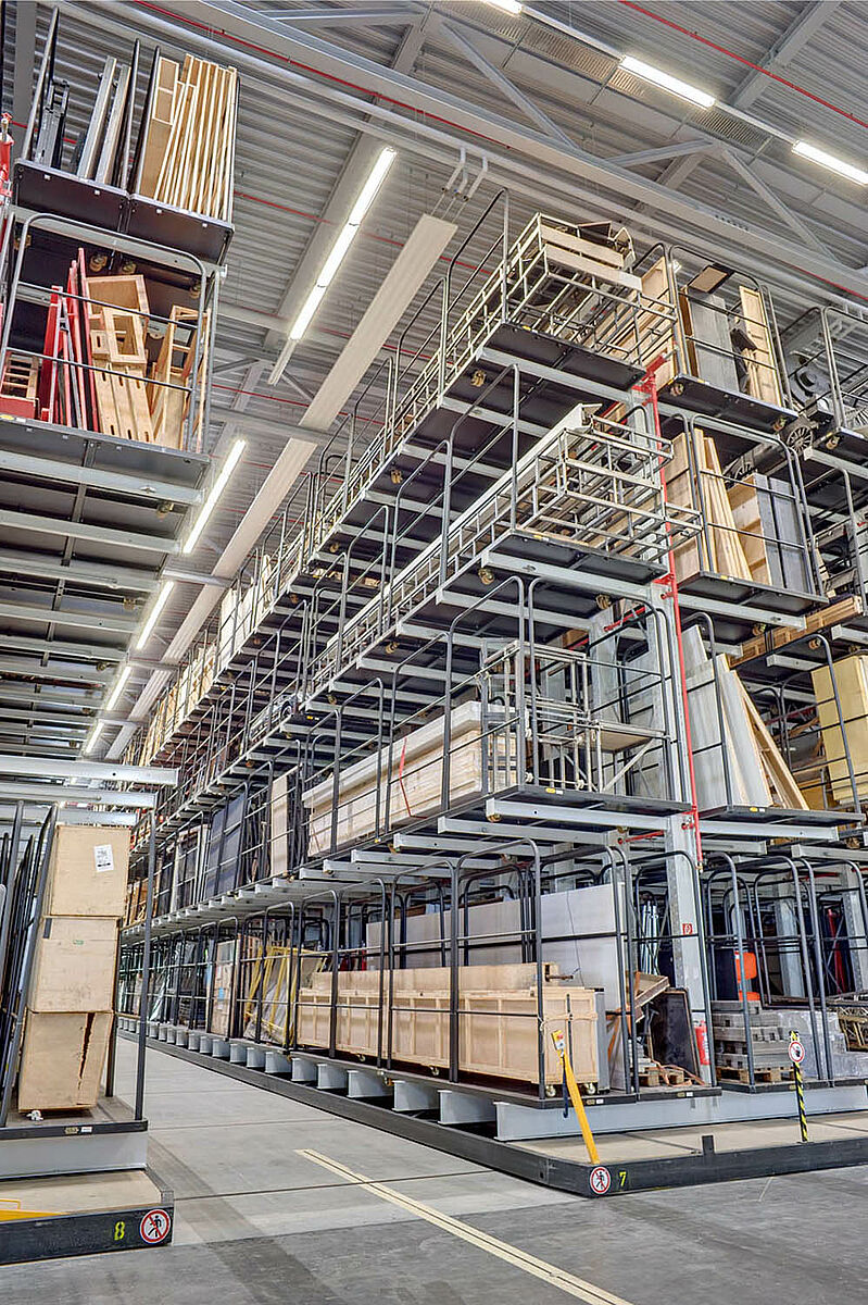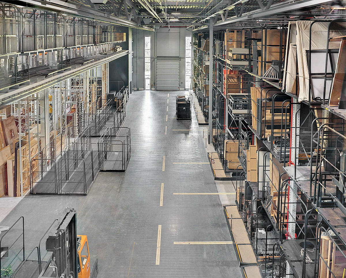 U 20 nizova dugačkih gotovo 60 m i visokih oko 12 m može se uskladištiti 560 kotrljajućih kolica za kulise punih kulisa različitih veličina i dimenzija. Pri veličini kolica za kulise od 8 m dužine, 2.30 m širine, 2,80 m visine i nosivosti 3.000 kg čak i cijeli automobili mogu na njima pronaći svoje mjesto.