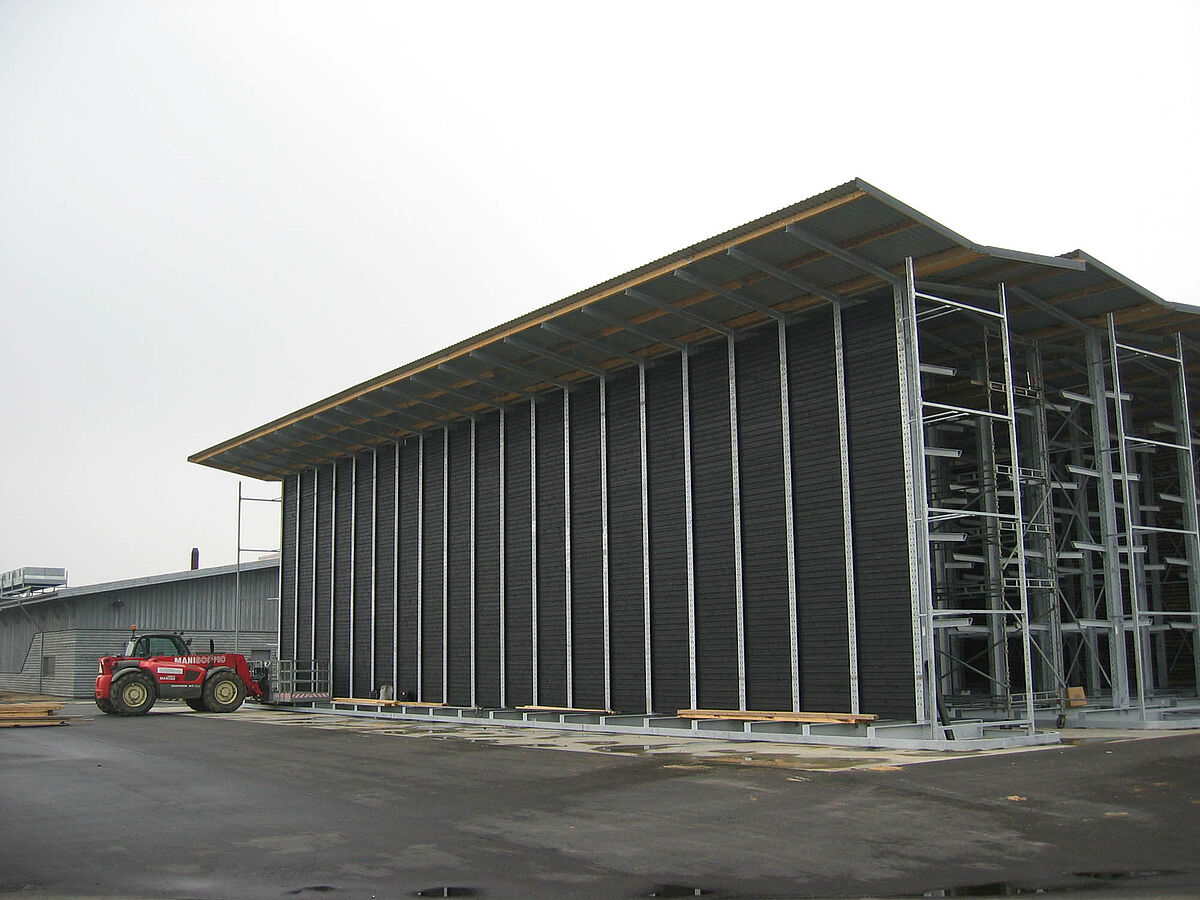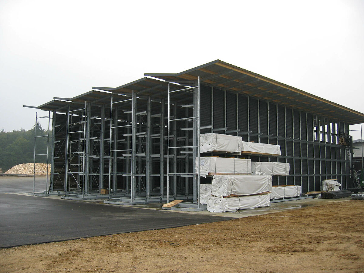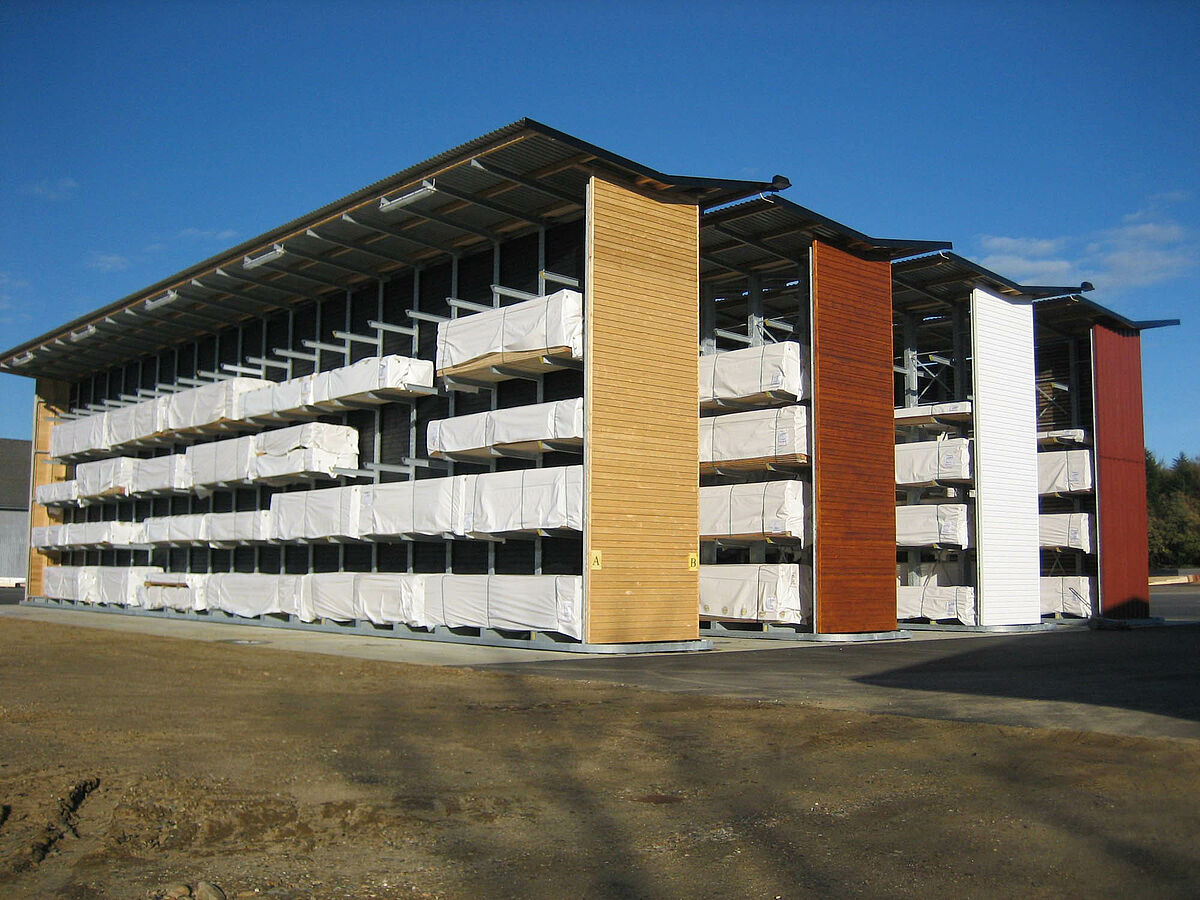 Neobrađeni paketi drveta su u prošlosti bili uskladišteni na otvorenom dvorištu. Za to je bila potrebna velika površina, a rukovanje drvenim profilima je trošilo puno vremena. Klijent je stoga htio proizvesti mogućnost skladištenja koja bi trebala biti smještena u neposrednoj blizini procesa prerade u postojećoj hali. Istovremeno bi novo skladište trebalo biti napravljeno na što je moguće manjem prostoru, kako bi troškovi ostali što je moguće manji s obzirom na površinu betona i krovišta. Osim toga je u budućnosti trebalo biti moguće i proširenje, a da nema potrebe za rekonstruiranjem.