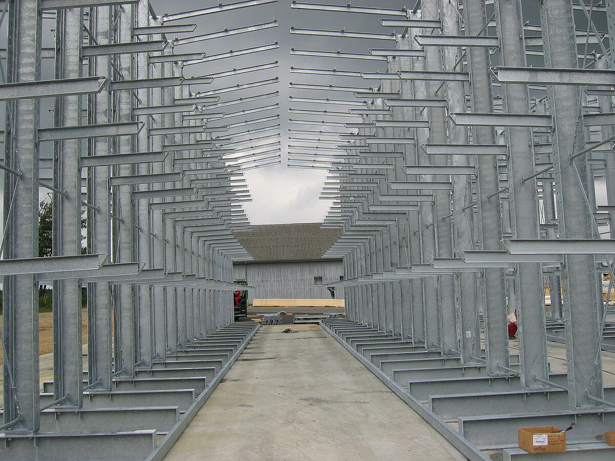 U prolaze su postavljene klizne vodilice, odgovarajući potrebama bočnog viličara. Ulazi na obje strane prolaza su zaštićeni od vjetra i vode presvučenim displejnim okvirima. Preklopni krovni elementi štite od direktnih vremenskih utjecaja, a istovremeno se brinu i o dovoljnoj prozračenosti. Vanjski regali su presvučeni vodootpornim zidom, što je također služilo kao zaštita od nevremena.