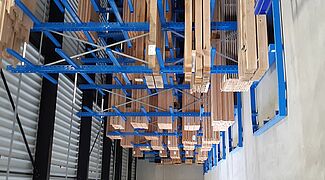 Dizajn skladišta s uskim prolazima osigurava visok stupanj iskorištenja prostora, vodilice na nogama regala olakšavaju manevriranje viličarima u prolazima. Zahvaljujući visokoučinkovitoj konstrukciji izrađenoj od čvrstih, vruće valjanih čeličnih profila, regali također mogu u potpunosti iskoristiti visinu prostorije: Paletni regali dosežu visinu od 6.600 milimetara, a konzolni regali dosežu visinu od 6.080 milimetara.