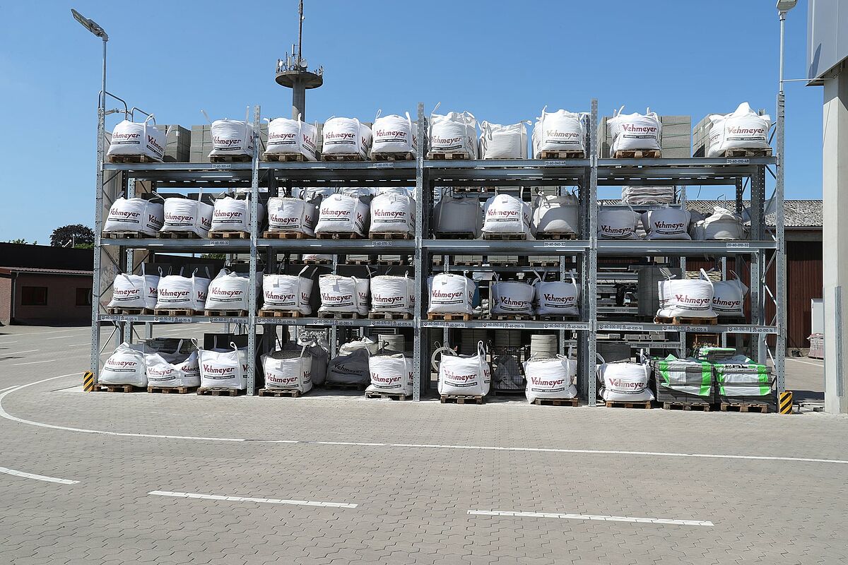 Prije nego što je 2018. godine sagrađena nova skladišna hala, roba - građevinski materijali i sirovine, proizvodi od drva, građevinski materijal za niskogradnju i uređenje okoliša, pločice i elementi za uređenje interijera, kao i artikli željezarije - pohranjeni su u uspravnim konstrukcijama u malim hodnicima s maksimalno tri do četiri razine skladištenja. To je ograničilo učinkovitost logističkih procesa i kupcima je bilo teško pronaći pravu robu. Zato je tvrtka Vehmeyer odlučila svu robu objediniti u novom, centralnom skladištu. Preduvjet je bio sustav regala s kojim se na raspoloživom prostoru može ostvariti najveći mogući kapacitet skladištenja.
