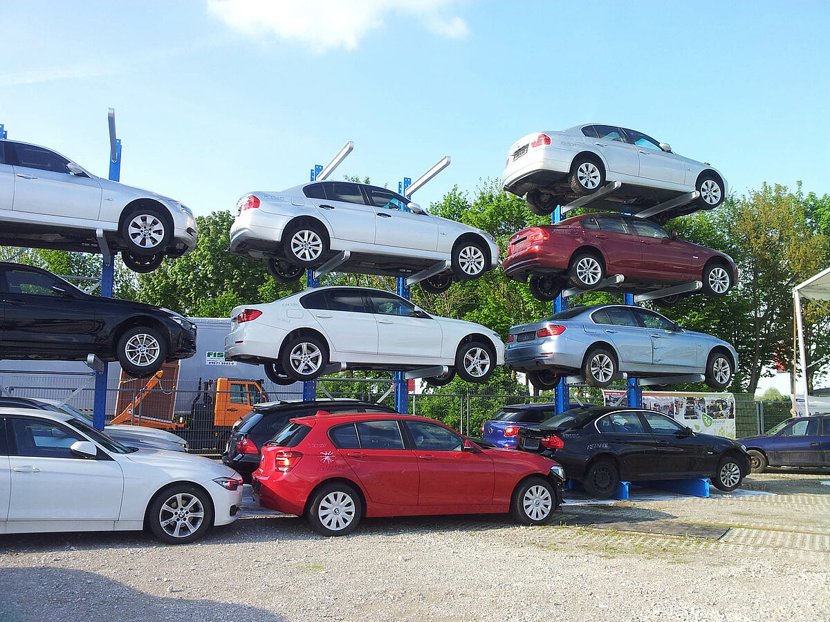 Mogućnosti skladištenja za 18 vozila. Isti broj otpadnih vozila zahtjeva zahvaljujući skladištenju u robusnim konzolnim regalima samo 48 kvadratnih metara. Omogućen je pristup svakom pojedinačnom vozilu. Zahtjevno pomicanje vozila više nije potrebno.