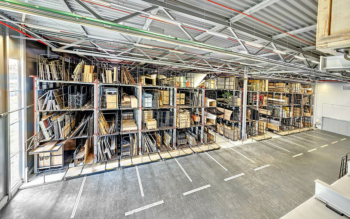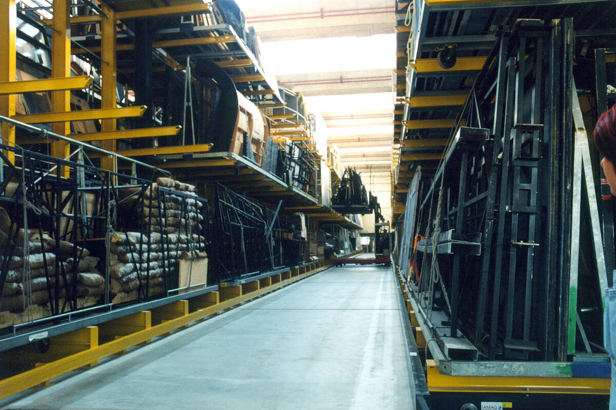 Za izradu i popravak kulisa potreban je niz materijala različitih dimenzija i težina. Robusni vertikalni regali jamče visoku nosivost – posebno teških, nepraktičnih i glomaznih predmeta – kao i brzo rukovanje u radionici.