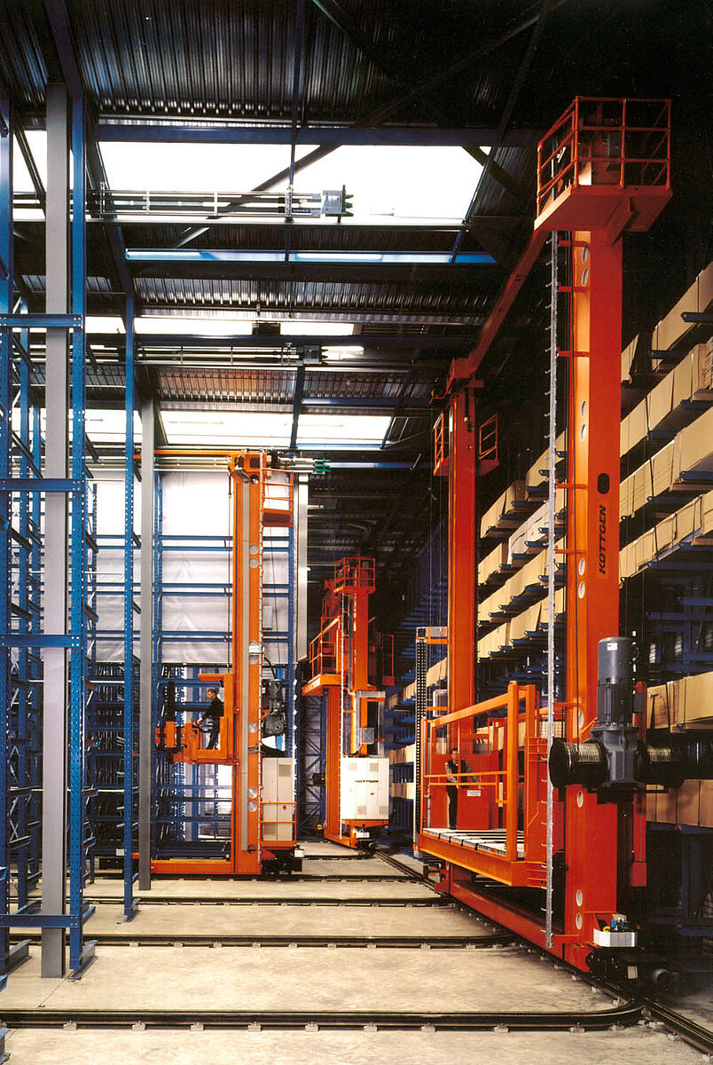 Optimiranje skladištenja djelomicnom ili potpunom automatizacijom procesa skladištenja i uzimanja robe sa skladišta. Po principu "roba k covjeku" povecana je djelotvornost pri velikim uslugama izdavanja robe. Ovisno o zahtjevu, mogu se uzeti cijeli paketi ili pojedinacne palete i prenijeti na stanicu za predaju.