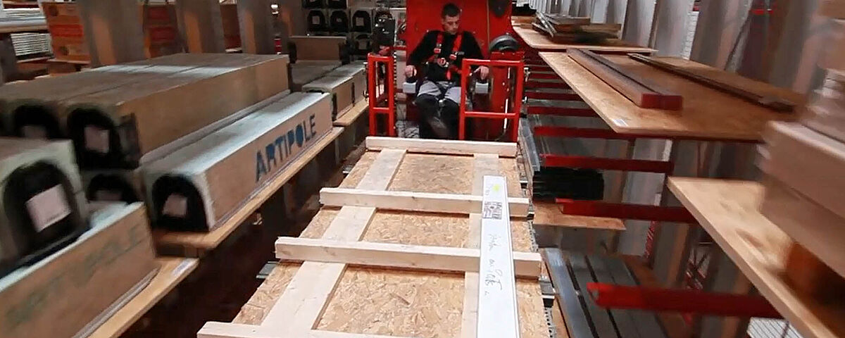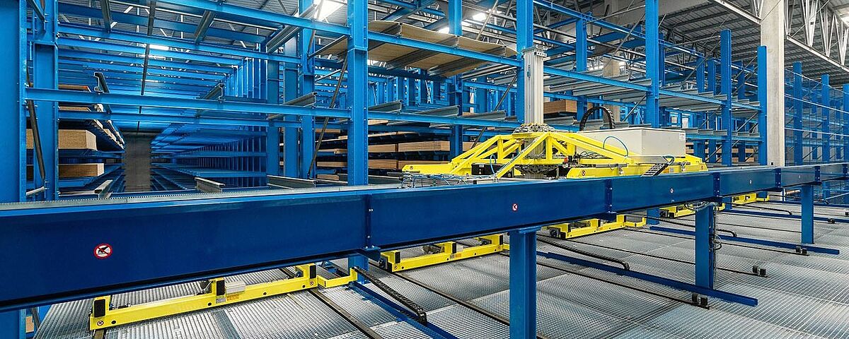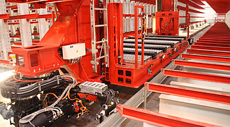 Pohrana i preuzimanje, preuzimanje i pružanje paketa povezanih s narudžbom potpuno su automatizirani. To ne samo da povećava učinkovitost cjelokupnog postupka skladištenja i branja, već također omogućuje visoku razinu iskorištenja prostora i smanjuje štetu na robi. Koncept korištenja prednosti dvostupanjskog branja potpuno je nov: Skladištenje i preuzimanje paketa u skladištu vrši stroj za skladištenje i preuzimanje (SRM). Ako nalog za otpremu zahtijeva odabir različitih pojedinačnih ploča, manipulator s vakuumskim podizačima sastavlja odgovarajuće članke, pri čemu se nekoliko narudžbi može paralelno obrađivati. Na taj način, dva odvojena sustava mogu na vrlo učinkovit način na vrlo učinkovit način složiti narudžbe.