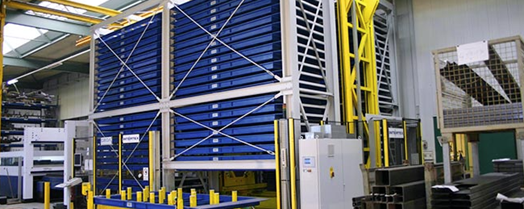 TowerMat je idealan za štedljivo skladištenje dugih materijala, limova ili paleta – osobito tamo gdje je potrebno učinkovito iskoristiti visinu hale. Vertikalni skladišni sustav je modularno konstruiran i fleksibilno se prilagođava skladišnoj robi i građevinskim uvjetima. Ovisno o izvedbi, mogu se skladištiti kasete ili sistemske palete težine do 8 tona. Automatska isporuka robe odvija se po principu „roba prema čovjeku“.