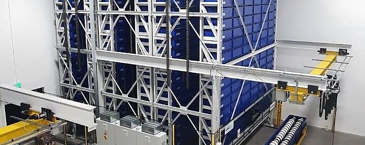 3. TowerMat TM-RE je najsnažnija izvedba i dizajniran je za velike količine skladištenja – s bočno pomičnim uređajem za upravljanje regalima duž više skladišnih tornjeva.
